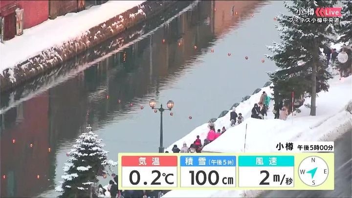 小樽です。美しいアイスキャンドルが並ぶ「小樽雪あかりの路」はあす14日(土)までです。今夜は弱い雪が降りますが、あすは晴れて、お出かけ日和になりそうです。