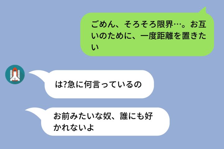 「ごめん、そろそろ限界…」LINEで別れ話を切り出した私→彼「お前みたいな奴、誰にも好かれないよ」と言われ返した一言