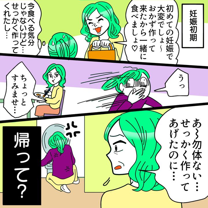 3. 【義母に言われてイヤだった言葉】妊娠初期のつわりで「うっ」「あ〜勿体ない」#ママスタショート