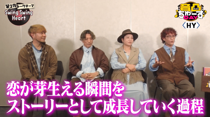 さらに、配信中の最新曲「Swing Swing Heart」がトークテーマに。作詞・作曲した新里さんは「新しいHYを表現することができた1曲」と話します。
