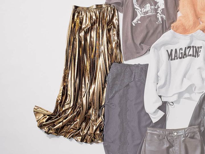 ジャケット¥39,600(メゾンスペシャル/メゾンスペシャル 青山店)Tシャツ¥6,380(GOOD ROCK SPEED/グッドスピード)スカート¥28,600(アルアバイル)バッグ¥70,400(ロンシャン/ロンシャン・ジャパン)ブーツ¥49,500(ペリーコ サニー/アマン)ピアス¥37,400ネックレス¥71,500(ともにブランイリス/ブランイリス トーキョー)リング[人さし指]¥15,400〈エムシー・スタジオ〉リング[薬指]¥10,340〈フル・オブ・グレイス〉(ともにズットホリック)