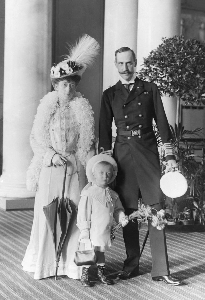 モード・オブ・ウェールズ(Maud of Wales)、オーラヴ5世皇太子(のちの国王)(Crown Prince Olaf V)、ホーコン7世国王(King Haakon VII) Bettmann / Getty Images