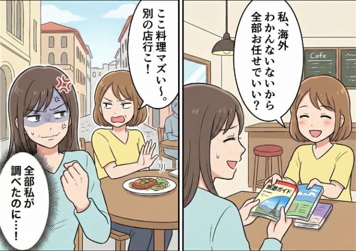 「私わからないから任せちゃっていい?」旅行の計画から全部丸投げの自己中な女友達。現地に着いてもワガママ放題の彼女に、ある仕返しでスカッと解決!?
