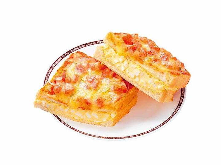 ふわっと厚みのあるトーストに、たっぷりのたまごペーストとチーズをのせた人気のピザトースト。メニュー写真以上に具材がぎっしり詰まっていると感じる人が多く、朝食にもランチにも満足感たっぷりです。