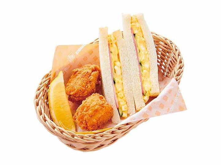 メニュー写真以上のボリューム感が嬉しい「ミニコメバスケット」。人気のコメチキ2個 にミニサンドが付いたメニューで、ドリンクとのセットにもぴったりなサイズ感です。