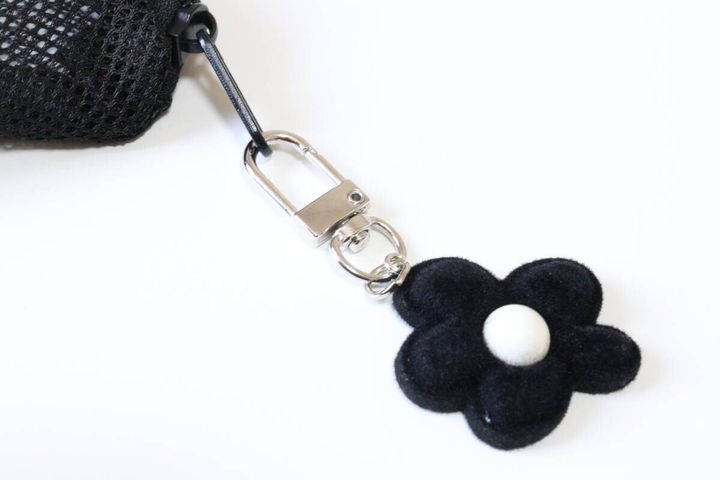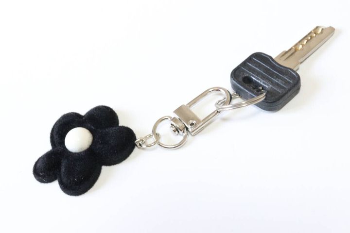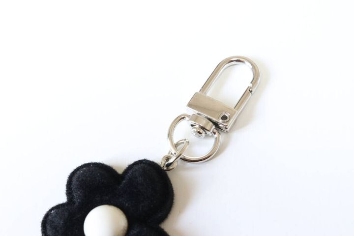 今回ご紹介するのは、こちらの『花キーホルダー(ホワイト、ブラック、ブラウン)』。お花のモチーフのおしゃれなキーホルダーです。
