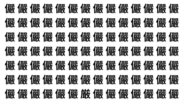 たくさんの「儼」の中に、よく似た別の漢字が1文字だけ隠れています。