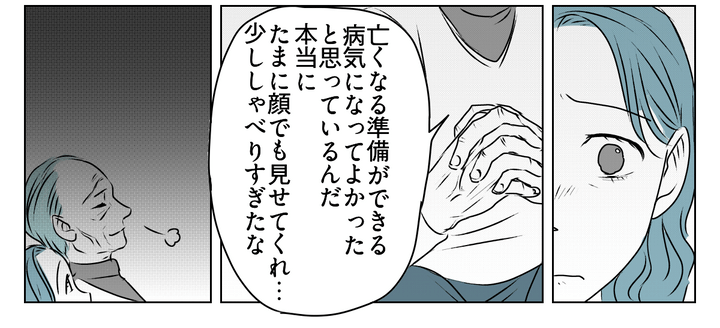父は母について「死に向かう人とちゃんと向き合うのが怖いんじゃないか」と、冷静に言います。