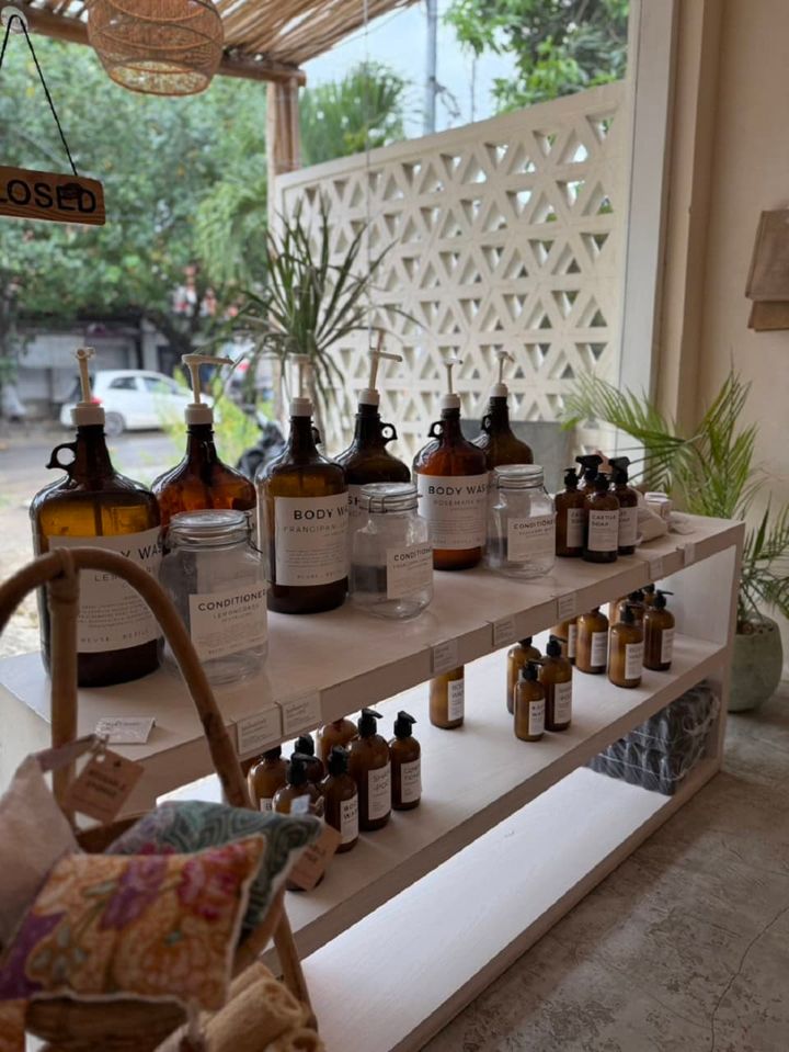詰め替え可能なプロダクトは地元のおしゃれなホテルやヴィラでも使われているそう。