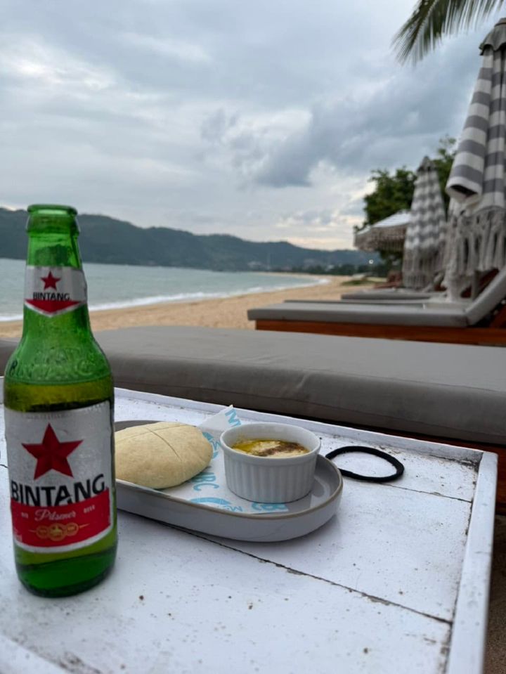 日が沈んだ後、ディナーまでに至福の一杯。インドネシアといえばのビンタンビールで乾杯。