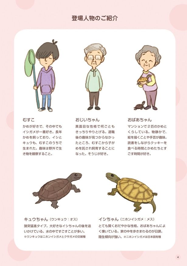 息子からなかば強引に引き渡されて、2匹のかめを飼うことになったおばあちゃん。飼育記録を付けるためパソコンを学んだり、かめを気にかけてくれる周りの人たちと交流したりと、かめたちと暮らし始めたことで日常がほんの少し彩られていきます――。