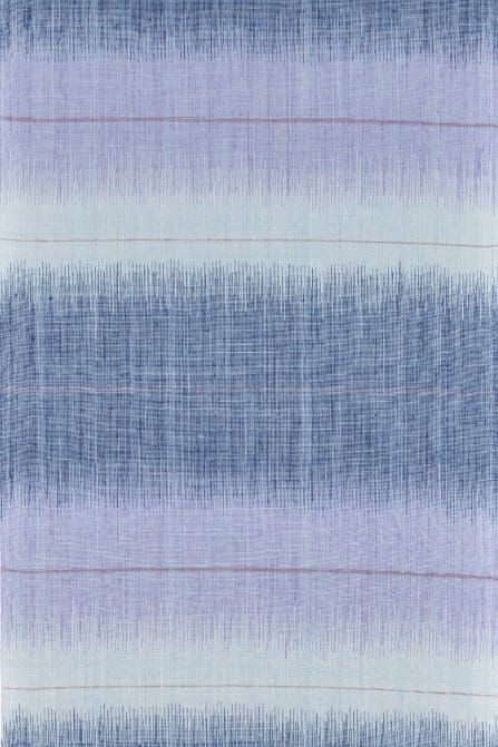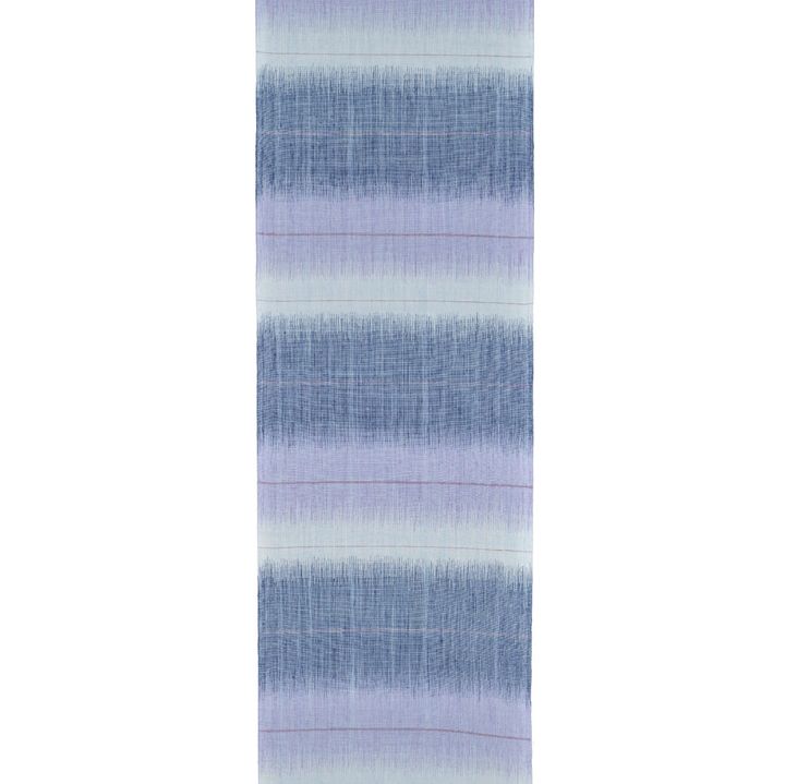 ●<strong>本場結城紬縮織 「ホリゾンブルー」</strong>朝日が水平線から昇るとき、刻一刻と変わっていく神秘的なエネルギーや眺めの美しさを、経(たて)の絣糸で横段ぼかしを表した、新しい試みの作品です。着尺/<a href="https://www.takashimaya.co.jp/" target="_blank" rel="nofollow">高島屋</a> 写真提供=高島屋