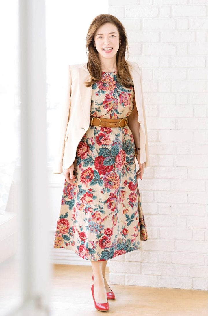 「1枚で決まるからワンピースは大好き。赤やブルー、イエローなど華やかな色を選ぶようにしています。年齢を重ねるとどうしても肌の色がくすむので、洋服が地味だとさらにくすんで冴えない気がして。写真を撮ったときに映えるのもいいですね」