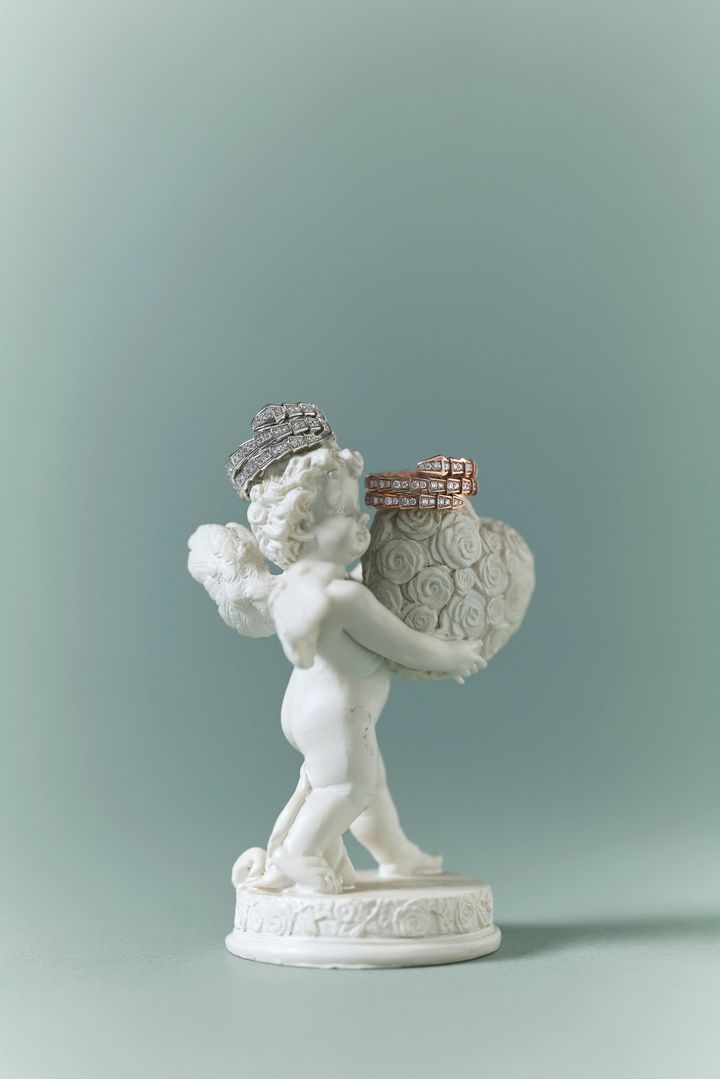 リング〈右〉[ダイヤモンド×PG]2,728,000円 〈左〉[ダイヤモンド×WG]2,871,000円(ともに<a href="https://www.bulgari.com/ja-jp/" target="_blank">ブルガリ</a>/ブルガリ・ジャパン tel.0120-030-142) 撮影=長山一樹(S-14)