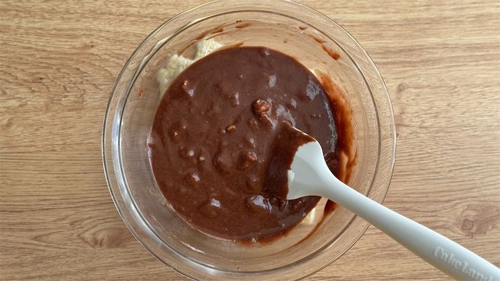 2. [B]を加え混ぜる。ドライいちじく(ラム酒ごと)とくるみも加え、混ぜ合わせる。