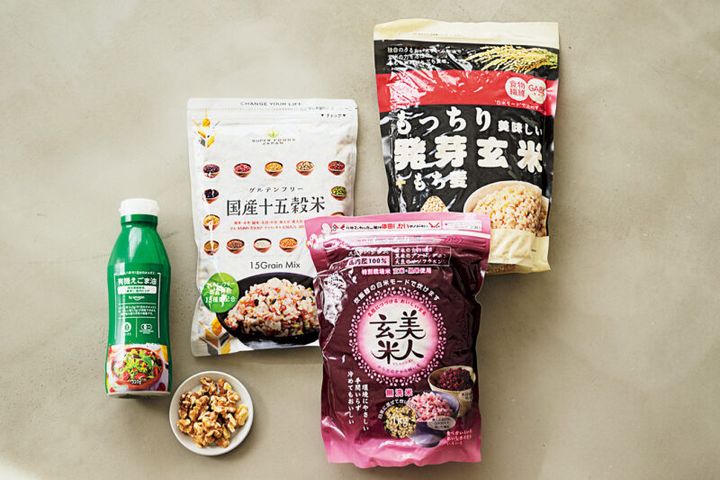 人工添加物や白米は避けて、「茶色」の穀物を取り入れたバランスのよい食事が基本。野菜やたんぱく質のおかずを先に食べることで、血糖値の急上昇を防ぎます。