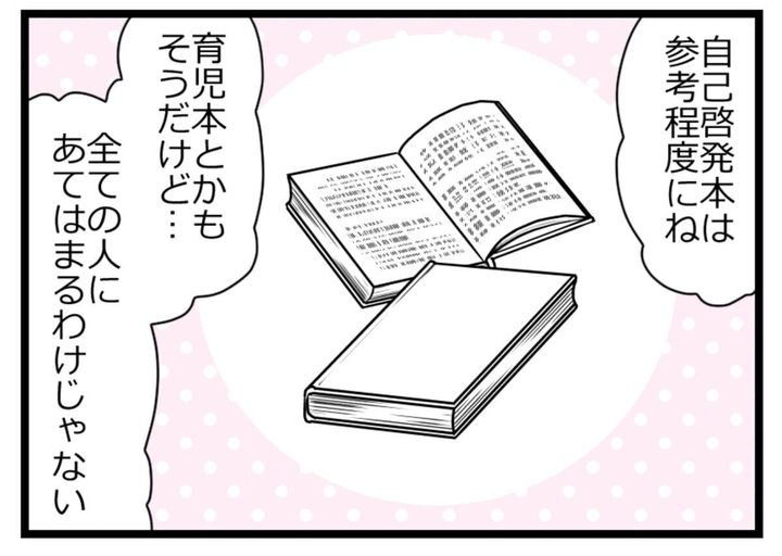 漫画内で、夫は自己啓発本に感化されて「自分の時間は自分で作る」「それが賢い人間」と発言していました。しかし、育児書も自己啓発本もすべての人に当てはまるというわけではありません。すべてを鵜呑みにしてしまうと、ライフスタイルから大きく外れてしまうこともあるでしょう。大事なことは、「わが家」に目を向けることです。今、わが家に合う考えや、共有するべき価値観は何か、ということを話し合うことですよね。