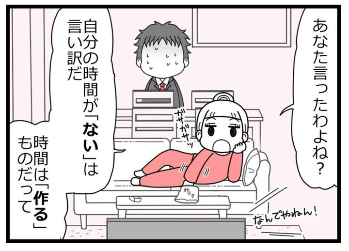 「自分の時間は自分で作る」という夫の主張に怒りの限界を迎える主人公。その時間は、本当に自分ひとりで作った時間なのでしょうか。