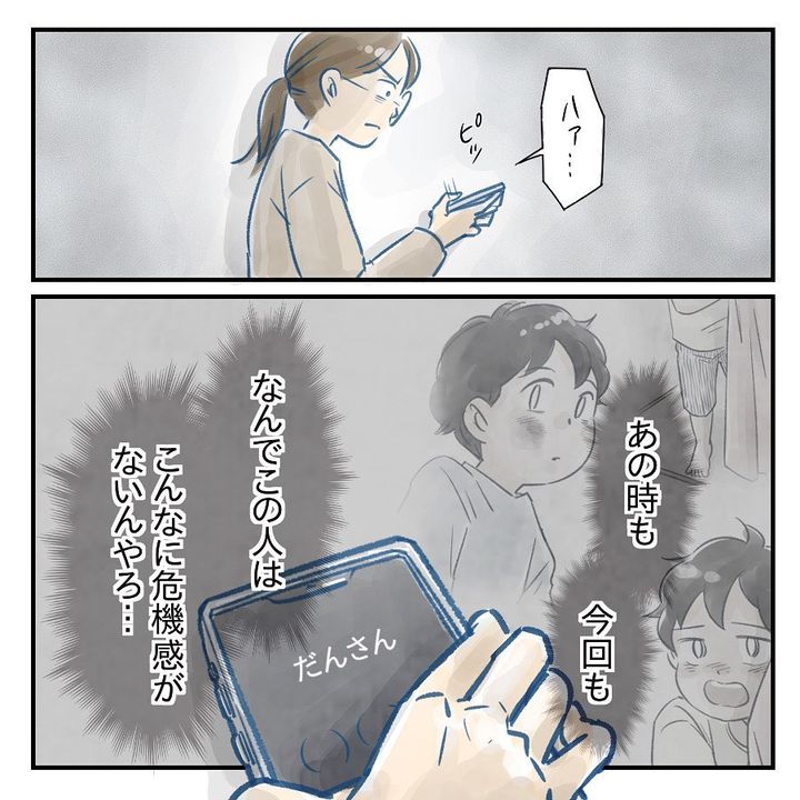 つまみさんは夫にジャングルジムから落ちた長男の顔を「なぜ冷やしたり病院に連れていなかったのか」と電話で咎めた。