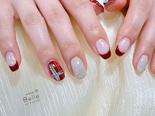 【大人の冬ネイル】おすすめ!赤チェックと艶フレンチで個性的に可愛く
