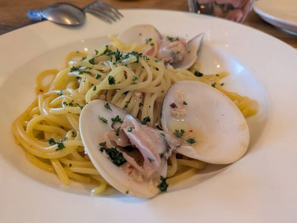 はまぐりのペペロンチーノは、にんにくのいい香りと貝のうまみがしっかり。