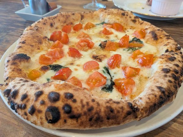 ふかふかで香ばしい窯焼きの生地に、チーズと甘いトマトが最高です!