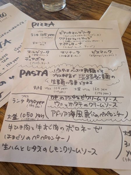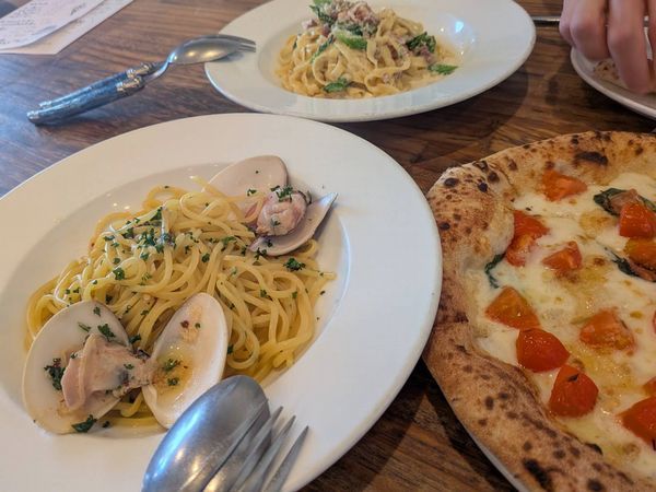 ということで急きょ作戦変更、パスタ2種+ピザ1種をシェアすることにしました。