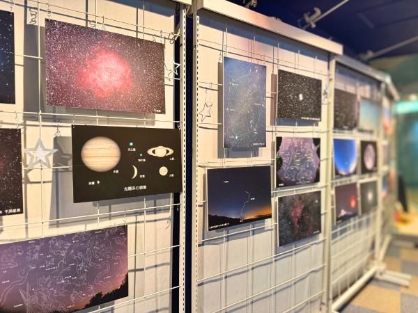 受付を済ませると、ロビーで開場を待ちます。 ロビーには天体パネルや、地元で撮影された星空写真が並び、眺めているだけであっという間。