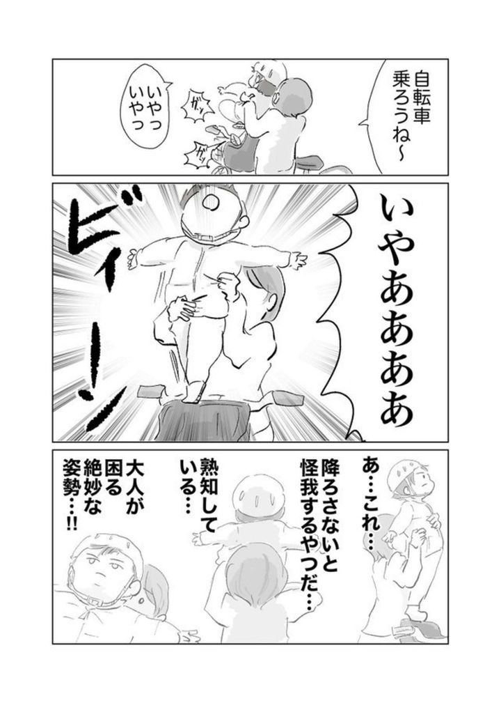 3. 2歳児が自転車を【断固拒否】→あまりに乗せにくい姿勢に共感の嵐「いつもこれ」「映画のよう」