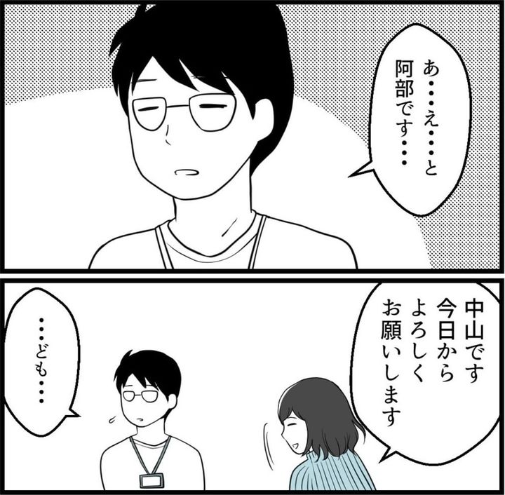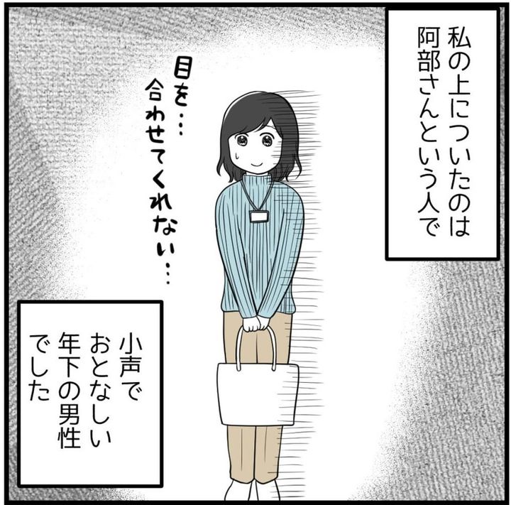 目を合わせてくれない指導担当の男性社員 残業中、気づけば隣に立っていて…【漫画】