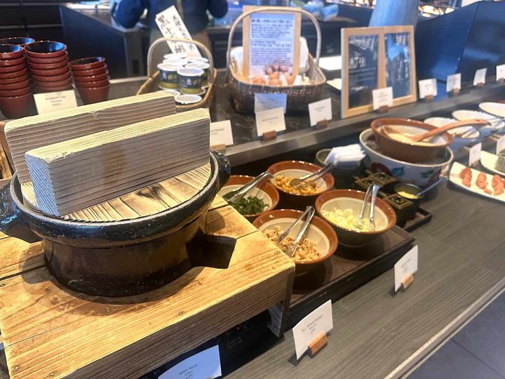 朝食ビュッフェも素晴らしい!有機卵を好みの調理法でオーダーできる卵料理や、キャラメリゼしたバナナのパンケーキ、アボカドスマッシュトースト、400年以上の歴史を誇る老舗「丁子屋」の伝統的なとろろ汁、地元の海産物など、和食も洋食も豊富に取り揃えています。