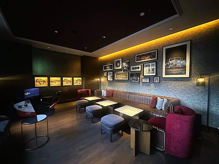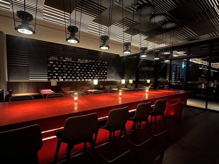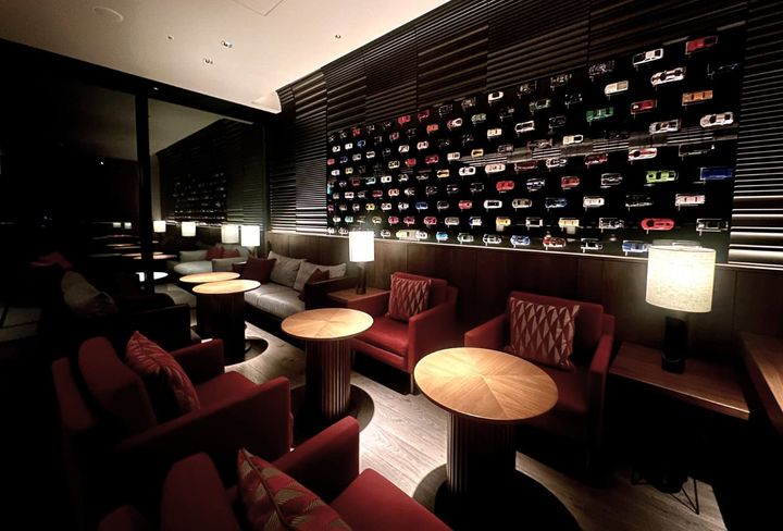 ディナーの後は、サーキットの全長に因んで名付けられた「BAR 4563」へ。広々とした店内にはF1カーを思わせる真っ赤なセンターテーブルが設けられ、足を踏み入れた瞬間からモータースポーツの息づかいを感じることができます。スターティンググリッドに停車している270台ものミニサイズのクルマが壁一面を埋め尽くすドラマチックな空間で、今にもレースが始まりそうな遊び心あるデザイン。厳選されたウイスキーやカクテルを片手に、モータースポーツの情熱に浸る特別な夜を♪