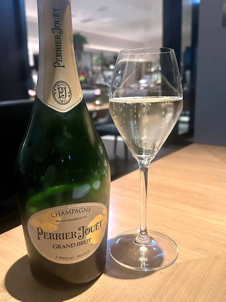 ペリエジュエで乾杯♪ ドリンクメニューのリストには、イタリア半島中北部、サンマリノ共和国に建つ伊勢神宮の分社サンマリノ神社の農園で育った、ぶどうから造られる「お神酒ワイン」のペアリング(¥4,840)もあります。