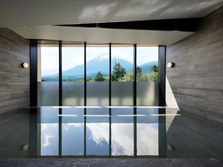 ホテル棟に隣接するウエルネス棟には、温泉浴場、スパ、屋内プールとジムを備えた「Omika Wellness & Spa」があります。宿泊者が無料で利用できる富士大御神温泉は半露天風呂がある大浴場。ホテルの地下1,500mから汲み上げた美肌効果があるといわれる自家源泉温泉に、富士山を眺めながらゆっくりと浸かれます。ドライサウナやスチームサウナもあり、水風呂は富士山の地下水を使用。湯上りにはリラクゼーションスペースで休憩しながら、静岡茶や朝霧高原の牛乳をフリードリンクでいただけます。