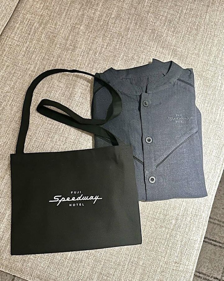 温泉や朝食に利用できるスタイリッシュな館内着と、持ち帰りOKなサコッシュもあります。