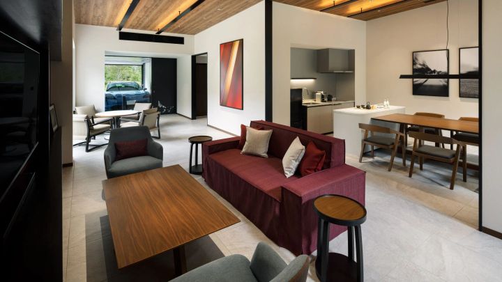広々としたスイート、ガレージ付きヴィラを含む全120室のスタイリッシュな客室は、全室バルコニーまたはテラス付き。額縁のように大きな窓からは息をのむような迫力のあるサーキットビューや、雄大な富士山ビュー、豊かな自然が広がるプライベートテラスなど、ここにしかない眺望を楽しめます。