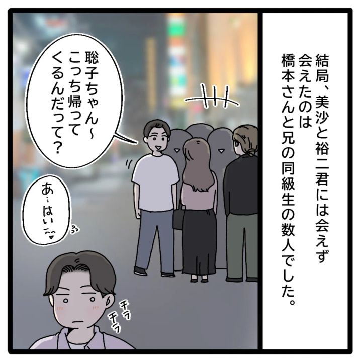 結局、美沙ちゃんや裕二さんの姿はなく、会えたのは正志と総一郎さんの同級生数人だけ。正志とは特に言葉を交わすことはなく、「聡子、これからこっちで暮らすから」と、総一郎さんにあっさり紹介されただけだったそうです。