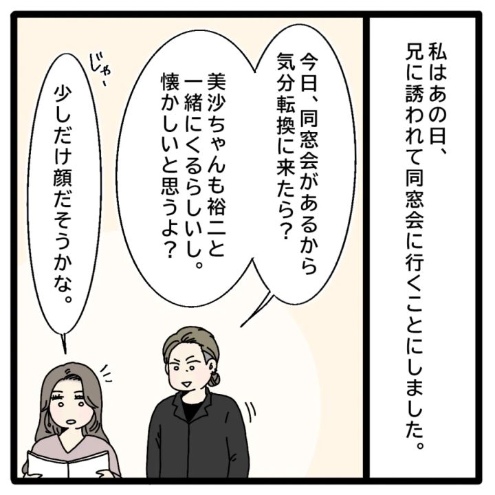 あの日、「今日、同窓会があるから気分転換に来たら?美沙ちゃんも裕二と一緒に来るらしいし、懐かしいと思うよ?」兄の総一郎さんにそう誘われた聡子さんは、少し顔を出すだけのつもりで同窓会へ向かいました。