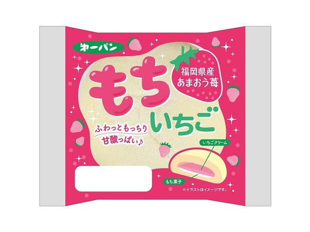 甘酸っぱいあまおういちごクリームともち菓子をやわらかな白パン生地で包みました。 カロリー:266kcal 【販売地域】関東・中部・関西・中国・四国
