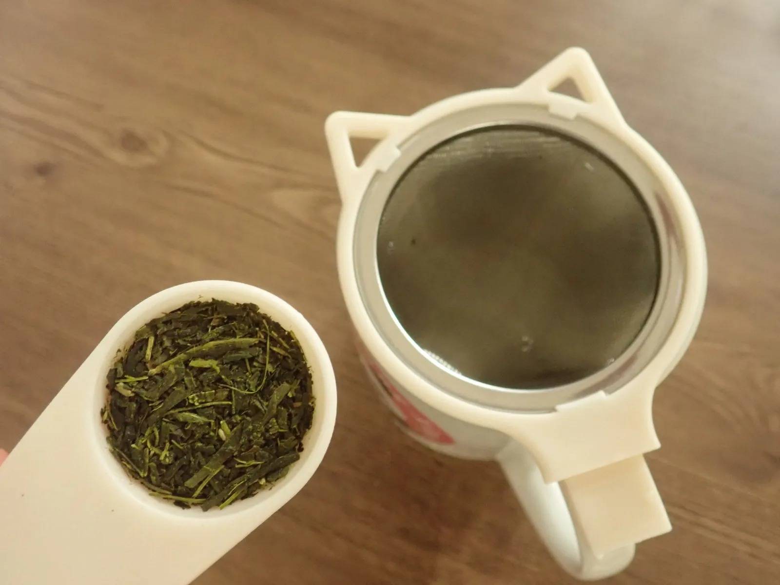 茶さじを茶こしと分離させて、茶さじに茶葉を入れます。