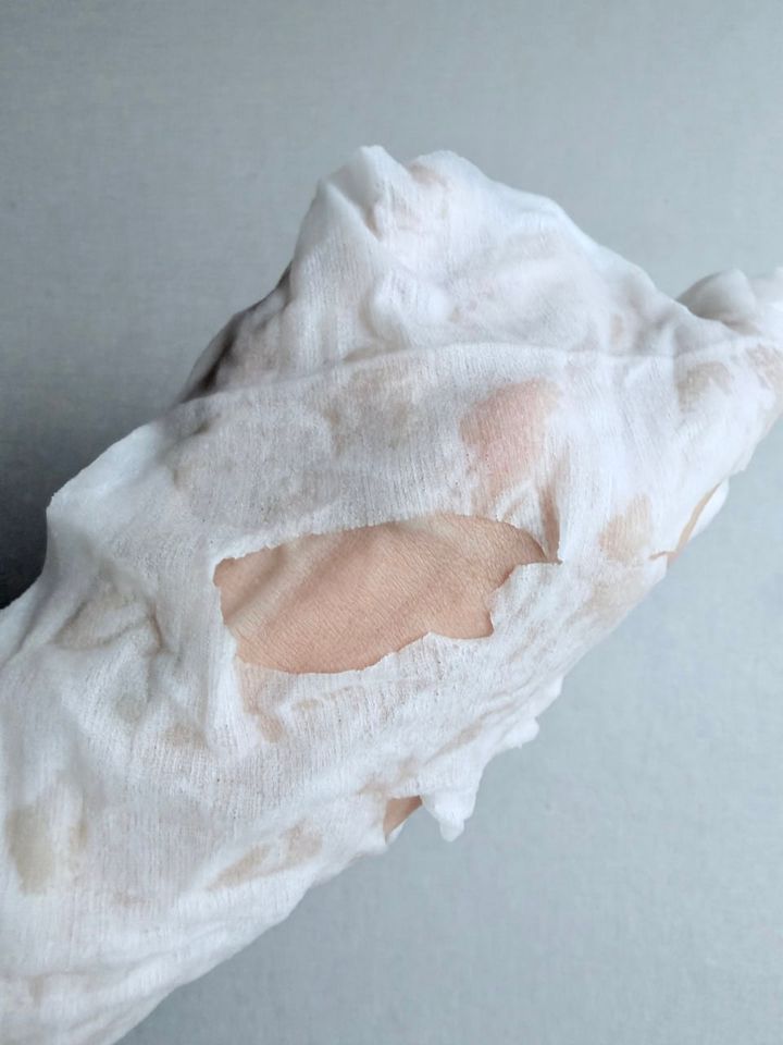 美容液はたっぷりですが、厚みのあるシートのおかげで液だれなし。60秒以上貼っていたくなるようなシートです