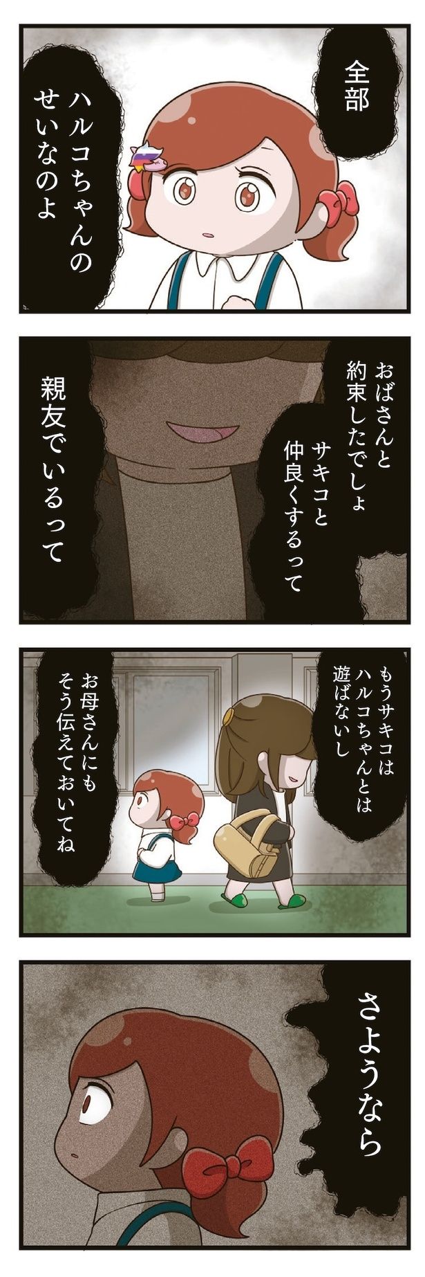 「お姉ちゃん学校でいじめられているんだって」息子の一言がきっかけで、母親は娘・ハルコの言動に違和感を抱くようになる。その結果分かったのは、ハルコが4年間、ひとりでいじめに耐えて隠し続けていたこと。いじめの本当の加害者は、被害者は誰? いじめと向き合う家族が希望を取り戻すまでの物語『家族全員でいじめと戦うということ。』を再連載でお届けします。いじめの原因になった同級生を描く新作『「お母さんの言うとおり」にしてきたのに 家族全員でいじめと戦うということ。 サキコの場合』も好評発売中です。