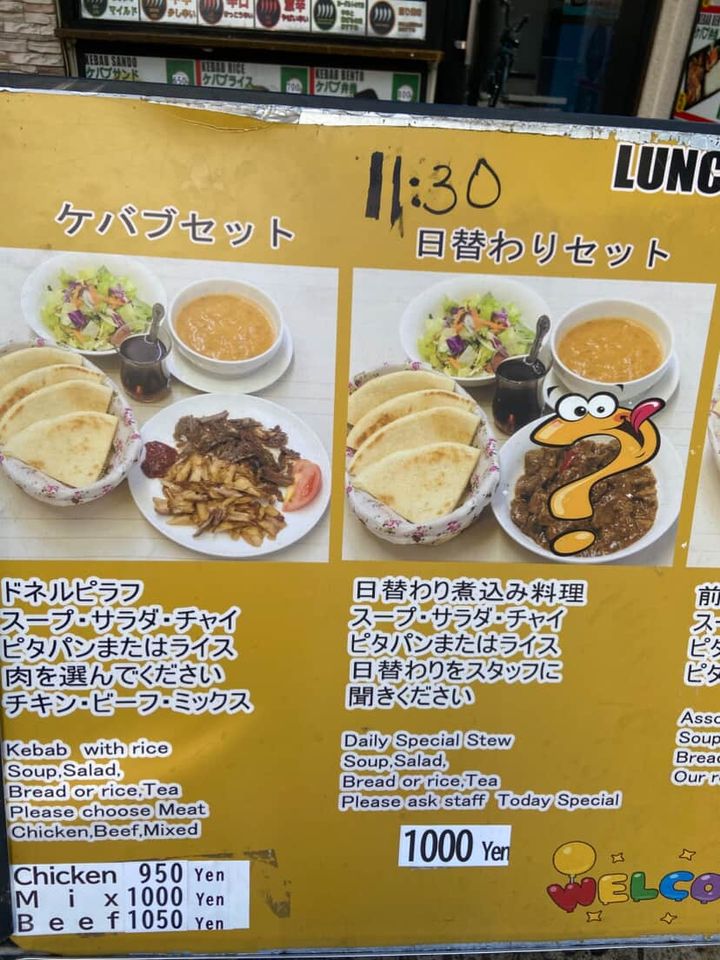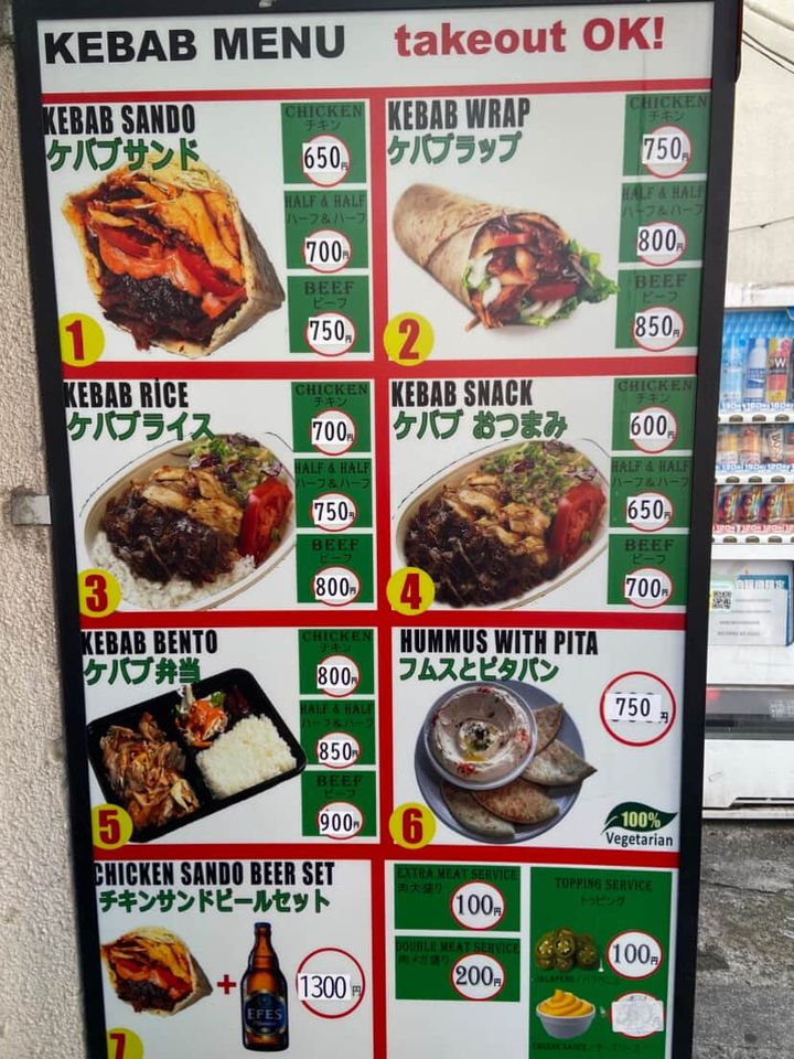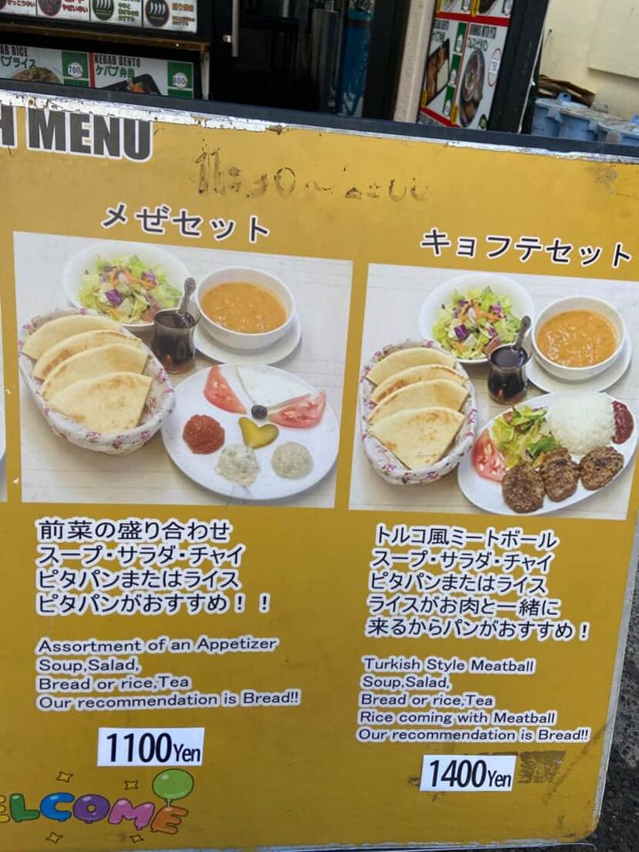 女性・男性一人でも入りやすい雰囲気のトルコ料理店さんでした。テイクアウトでしたら外から注文できるので、車椅子やベビーカーでの訪問もできます。気になるメニューですが、テイクアウトではケバブサンド・ケバブ弁当・フムスとピタパン・チキンサンドビールセットなどをいただくことができます。店内では、日替わりの煮込み料理が付いた日替わりセット・前菜の盛り合わせが付いたセット・トルコ風ミートボールなどが付いたキョフテセットなどをいただくことができますよ。