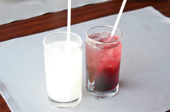 5種類(ローズヒップ&カシス、マンゴーミックス、ざくろラズベリー、白桃ミックス、柚子はちみつ)の中から好きな味を選び、炭酸で割ったものをいただけます。