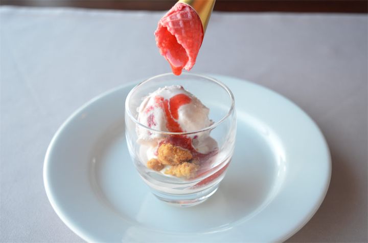 いちごとチーズムースのパフェは、濃厚でフレッシュないちご味のアイスがたっぷり。