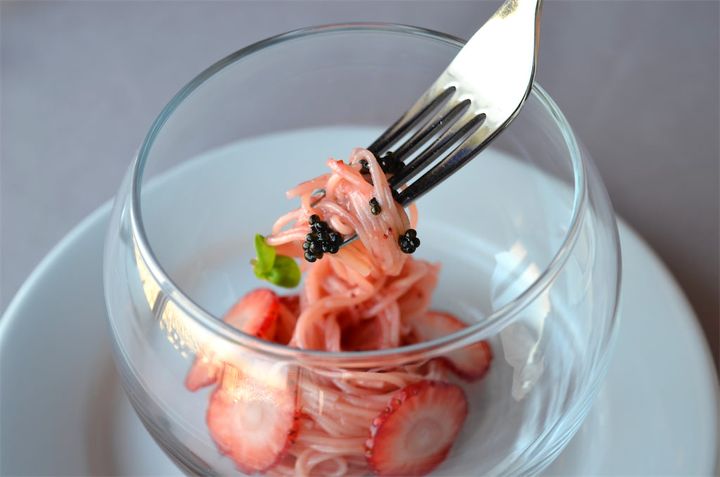 そこにオリーブオイルのコクと薄切りのいちご、最後に忘れるなかれのキャビア様の塩味が合わさればもう…味のマリアージュに感服です。