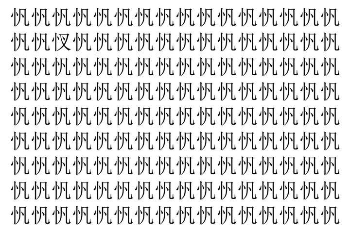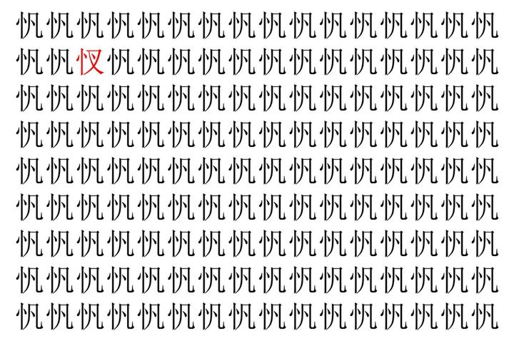【脳トレ】「忛」の中に紛れて1つ違う文字がある!?あなたは何秒で探し出せるかな??【違う文字を探せ!】