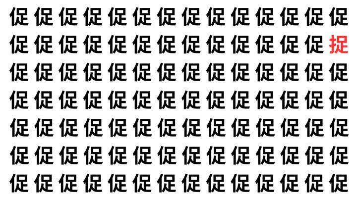 たくさんの「促」の中に、よく似た別の漢字が1文字だけ隠れています。