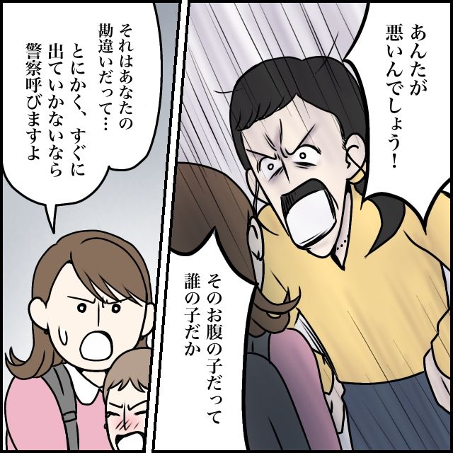 すると玲美さんは鬼のような形相で「あんたが悪いんでしょう!そのお腹の子だって誰の子だか」と私を怒鳴りつけてきました。私は彼女をこれ以上刺激しないよう、「それはあなたの勘違いだって・・・とにかく、すぐに出ていかないなら警察呼びますよ」と、できるだけ冷静に言い返します。