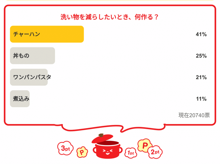 ・「洗い物を減らしたいとき、何作る?」の結果は…
